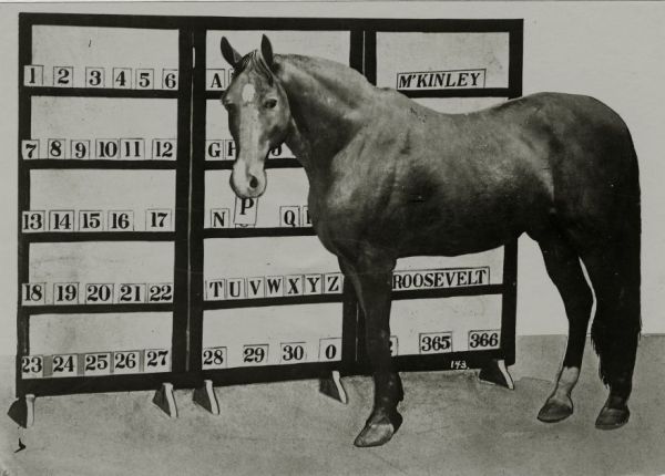 "Beautiful Jim Key" was exhibited across the country for years, where he wrote his name, properly exchanged money, and spelled out audience member's names by selecting letters from a rack. He could also solve math equations by picking numbers. Jim was one of the biggest draws at the 1904 World's Fair in St. Louis. All that time, Dr. Key used Jim to spread the message of kindness to animals and how training was most effective when using gentleness and patience. Read about the show biz career of Beautiful Jim Key. -via Strange Company