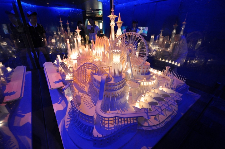 This stunning castle was created by Japanese art student Wataru Itou. It took four years of dedication to bring to fruition. It is complete with electric lights and a working train. The exhibit is called "A Castle On The Ocean" and is on display in Tokyo.