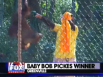 Baby Bob is an adorable orangutan at the Greenville Zoo in South Carolina. As part of his birthday celebration they thought it would be fun to have him predict the winner of the Super Bowl.