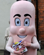 Jill Makinson-Sanders is the mayor of Louth, Lincolnshire, England. When the Olympic torch relay made its way through her town, she attended the event not in the traditional ceremonial garb of a mayor, but in an 8-foot-tall pink sausage costume! Her aim was to promote Lincolnshire bangers (sausages), but some mistook her for a penis. One witness said,