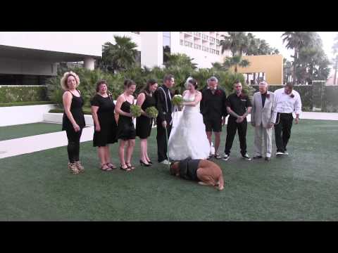 Jethro was the ring bearer at this wedding, so it only makes sense that he be in the group pictures of the wedding party. But Jethro is a dog, and his tuxedo is a bit itchy. There’s one in every crowd who won’t cooperate, and it’s usually the ring bearer, whether he’s a toddler or a dog. That makes for a headache for the wedding photographer, but a delight for the wedding videographer! After all, what’s more fun: posing for wedding pictures or rolling in the grass? -via Daily Picks and Flicks