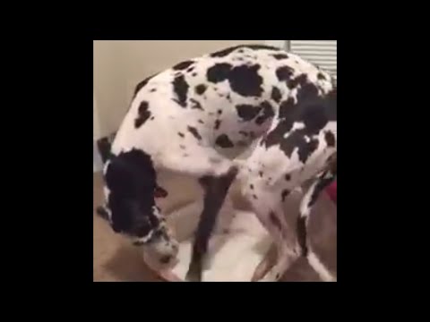 The little dog bed is too small for him. It was probably too small for him even when he was a puppy. But that doesn't stop this huge Great Dane from trying to mash it down into a proper nest!
