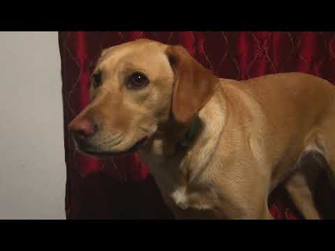 Molly, who is biding her time--just biding her time, mind you--is a 3-year old Labrador. When you ask her to smile, she'll do it. She act like a happy, friendly dog who loves you. For now.