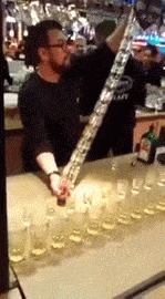 Philip Traber isn't just a bartender. He's an artist with glass and liquor. His YouTube channel is filled with amazing trick shots of him making shots, such as these 14 Jägerbombs.