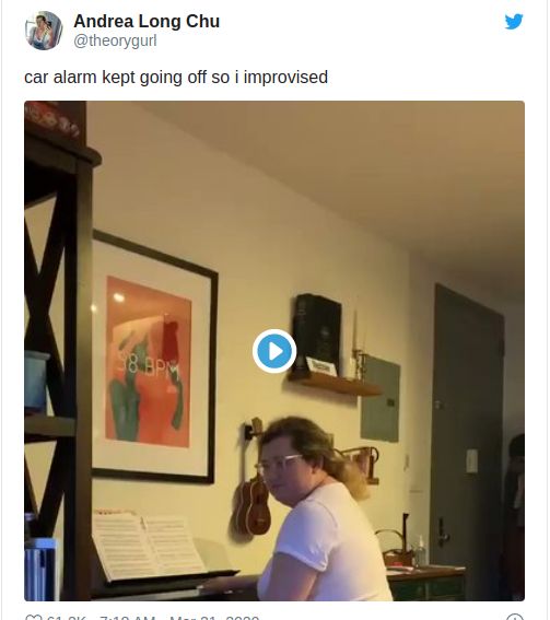 When life gives you lemons, make it into lemonade! This is what Twitter user Andrea Long Chu (@theorygurl) did as she made a brilliant tune from the annoying noise outside her apartment. Thanks to the car alarm outside, she was inspired to improvise a musical piece out of it. Check out her work at Twitter.