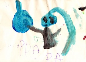 This work is a definite collaborative effort between the two youngsters. The artists are trying to convey their want, nay need, for a pinata filled with candy and toys. Apparently, everyday is a good day to beat something with a stick until it gives you toys and candy.
