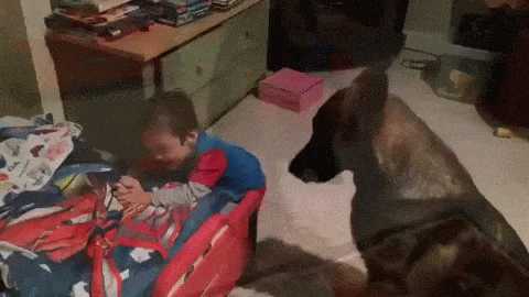 Dog Puts Little Boy to Bed