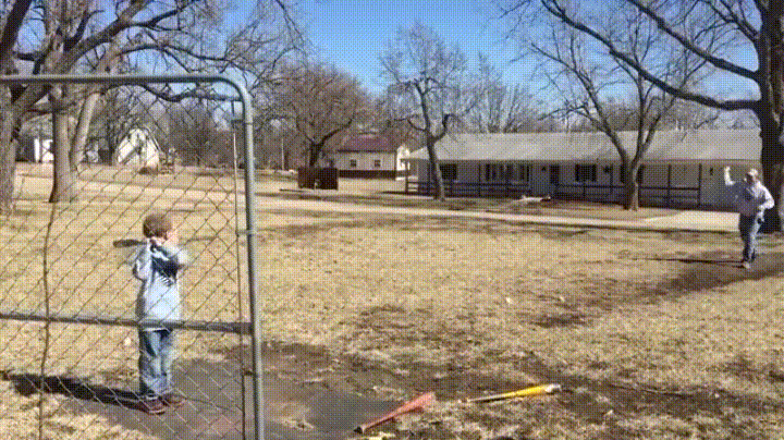 Check out this baseball game! The kid hits what looks like a home run. He starts running the bases, but their dog is taking his position at left field seriously. You're out! Then again, maybe the dog is fetching the ball and bringing it to the boy, just like he's been taught to do. -via reddit