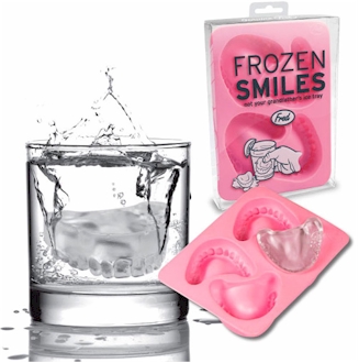 This novelty ice cube tray is made from soft food-safe synthetic rubber that will allow you to freeze up a batch of Frozen Smiles and drop them into any glass as a gag.
