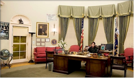 Here's an interactive point and click photo of Sarah Palin sitting in the Oval Office. Click on various items and be sure you turn your speakers on for the audio. Link