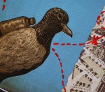 Collage painting "Wanderlust Carrier Pigeon" by Christina Lovering
