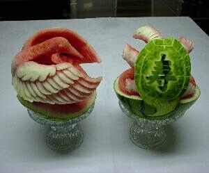Here comes October, which means it's close to pumpkin carving time. But if you're reluctant to let go of summer, head on over to Takashi Itoh's and check out some wonderful watermelon carvings. Takashi says it only took him three weeks to become skilled at it.
