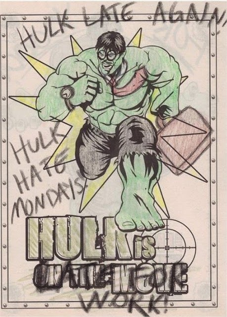 Hah, about a year ago I did the exact same thing with a crappy 99 cent Hulk coloring book. I mailed it to a friend of mine so we could each add our own wacky drawings (It was a really thick coloring book).