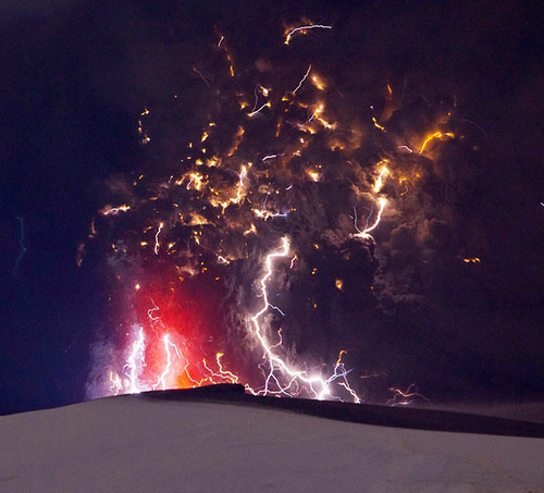 The Daily Telegraph has compiled a 31-image slideshow of amazing photographs of the volcano currently erupting in Iceland. Scientists aren't sure why electrical discharges are visible during some volcanic eruptions, but: