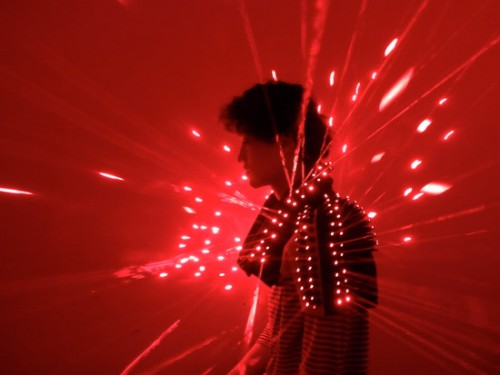 Taiwanese designer Wei-Chieh Shih put two hundred laser diodes on a nylon jacket. When he spins around, it looks all swirly. More pictures at the link.