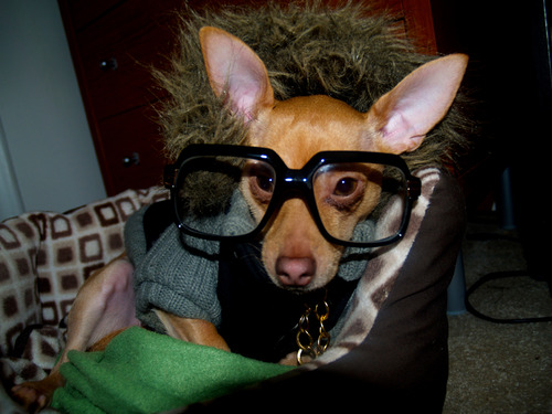 I don't really get why people freak out over dressing up animals. We eat cows and chickens. I don't think dogs mind that they get away with wearing the occasional pair of aviator sunglasses. =/
