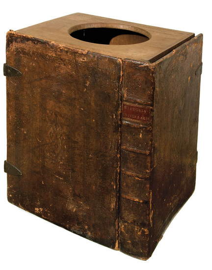 An unusual example of the use of the book form to disguise travelling personal furniture, probably for use on the military field.
