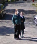 A man wearing a fake horse's head -- or, alternatively, a man who has the head of a horse -- was spotted on Google Street View's presentation of Aberdeen, UK. This mysterious creature has reappeared on a different image: