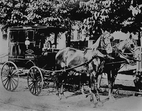 This is a photograph of what is alleged to be the first American bookmobile. It was built in 1905 by the public library of Washington County, Maryland. Mary Titcomb, the librarian responsible for its creation, described its importance: