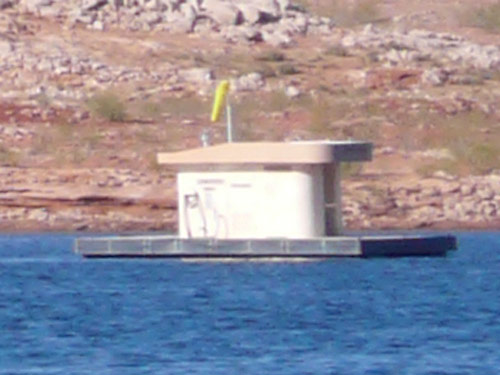 Well, the floating latrines on Lake Powell do happen to have restroom facilities, but their main purpose is to serve as dump stations for port-a-potties. You can imagine how quickly one of those little numbers can fill up with a medium to large quantity of people out camping on the lake, so these facilities are fully stocked with a dump and non-potable water for rinsing afterward. Quite handy and I've utilized them for this purpose a number of times myself.