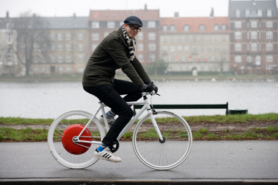 Users can also dock a smartphone to the Copenhagen Wheel to control how much assistance the electric motor provides.