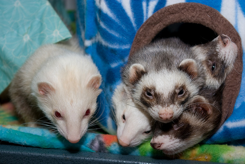 "Ferret comes from the Latin furritus, for 'little thief,' which probably alludes to the fact that ferrets, which are related to pole cats, like to steal hens' eggs. Its name also developed into a verb, to ferret out, meaning 'to dig out or bring something to light.'" (From Cool Cats, Top Dogs, and Other Beastly Expressions, by Christine Ammer)