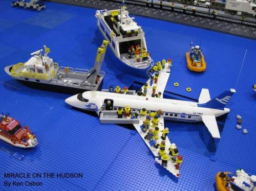 BrickExpo 2010 will be held in Cincinnati the weekend of September 11-12. One of the displays will be a recreation of the 2009 plane crash in New York in which an airliner safely landed in the middle of the Hudson River, which became known as "the Miracle on the Hudson" as all passengers and crew were rescued from the water. Ken Osbon of Goshen Township, Ohio created the Lego version of the incident. Osbon, one of the event's organizers, said other Lego displays will depict a farm, a city with a train running through it, a pirate tableau, and even one recreating a scene from the TV show The Deadliest Catch. Link -via Fark