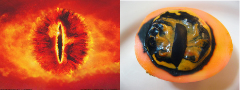 Andrea Newberry made deviled eggs that look like the eye of Sauron from The Lord of the Rings movies. The pupils are made with olives. You can read her recipe at the link.