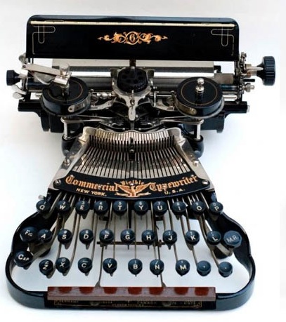 Mechanical typewriters go back almost 200 years, or even longer depending on how you define "typewriter". In the early days, the design was not standardized, and many configurations were tried out. Letters were chosen on a slider in one style, on a disc in another. Another configuration was the Malling-Hansen Writing Ball (featured previously). Eventually, manufacturers settled on the QWERTY keyboard layout that we still use today, even though typewriters are rarely used anymore. See a variety of these early machines at Dark Roasted Blend. Link