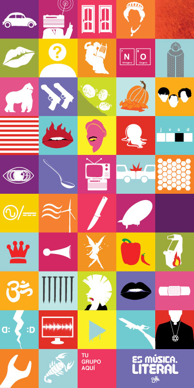 This illustration contains the names of 48 musical groups rendered as icons. Can you figure out the names of the bands? Click on the image at El Espíritu de los Cínicos to see the answers. Link -via Gorilla Mask