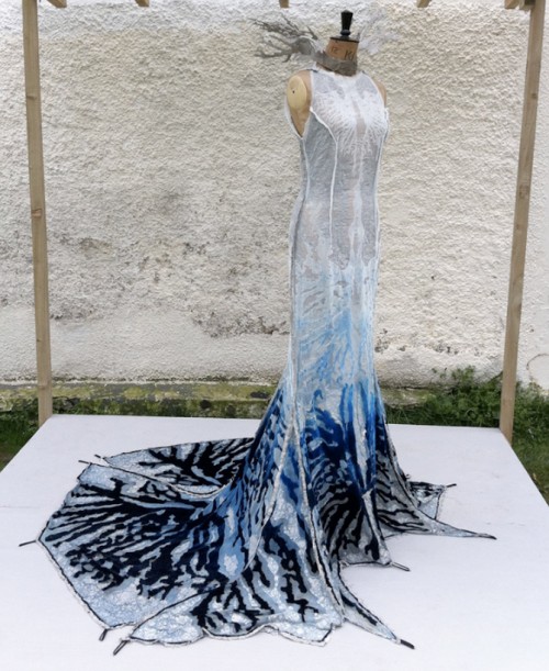 The sculpture above is the creation of Catalytic Clothing, a team exploring how textiles might eliminate certain pollutants from the air. Called "Herself", this fashionably scientific prototype is sprayed with a concrete mixture that purifies the air by decreasing nitrogen dioxide and carbon monoxide in the surrounding area. But don't rush to your nearest department store to pick one up as the project is still in the early experimental stage.