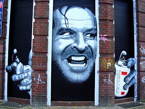 Famous faces in public places, but these aren't advertising bill boards. Web Urbanist rounded up pictures of street art that incorporates celebrities you know and maybe love. This image of Jack Nicholson was painted in Berlin a few years ago. Link -via Rue the Day