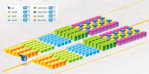 You might not be able to fly down to Rio for Carnival, but you can hear and feel a “bateria,” a samba school drum section, in this web toy from Brazil. Enjoy the rhythm, or toggle on and off the sections to hear how each instrument sounds: shaker, cuica, agogo, tambourine, snare drum, repique, and bass drum. Use the menu at the top of the site to see the actual instruments played or see how a samba parade is conducted. Link -Thanks, Alessandro Manoel!