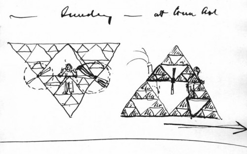 Alexander Graham Bell is best known for his work on the telephone, but that was far from his only interest. The Library of Congress preserved Bell's handwritten notes and sketchbooks for our perusal. They are filled with ideas and experiments, although the handwriting is, to put it kindly, sometimes hard to decipher. The Atlantic has a gallery of some of the more interesting sketches, like this airplane that resembles a Sierpinski triangle.