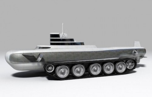 That's imaginative but I don't see much advantage to wheels on a watercraft. Why not just use propellers?