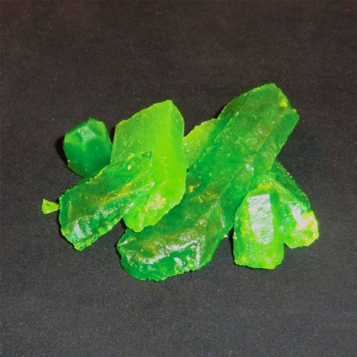 Instructables user Britt Michelsen has lately been experimenting with fluorescent materials, including riboflavin. She decided to use it to make a food that looks like kryptonite. Michelsen made a mold out of aluminum foil, cooked riboflavin into sugar, and poured it into the mold. The result was a glowing candy that looked quite like the lethal substance in the Superman mythos.