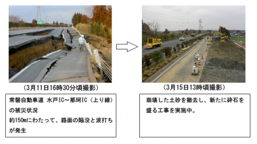 Amazing, indeed. The picture on the left is dated 3/11. The picture on the right is dated 3/15. Meanwhile, a stretch of highway near my home was repaved in only 18 months. If you can read this post in Japanese, maybe you could give us more details.