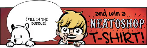 It's time once again for the Fill in the Bubble Frenzy with boy genius Mal and his talking dog Chad! Tell us what goes in the empty speech bubble and you might win any T-shirt available in the NeatoShop -take a look around, pick one out and tell us what shirt you’d like with your submission in the comments. If you don't specify a t-shirt with your entry, you forfeit the prize. Enter as many times as you like (text only, please), but leave only one entry per comment. For inspiration, check out Mal and Chad’s comic strip adventures by Stephen McCranie at malandchad.com. Good luck!