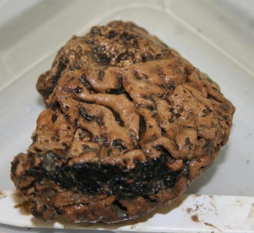 After being deposited in the water-logged pit, the Heslington brain began to change chemically, developing into a durable material and shrinking to a quarter of its size.