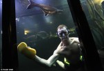 In the basement of Jack Heathcote's five-bedroom home, you can find the largest aquarium in Britain. In measures approximately 13 by 13 by 7 feet and can hold 4,800 gallons when filled to capacity. Heathcote has to clean it by hand (pictured) by diving in with the exotic fish from all of the world that he's collected: