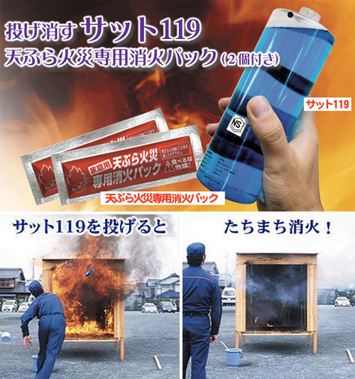 I can't tell you much about this item because the information is in Japanese. The video at the link, however, shows men throwing two canisters into a burning box, and those actions alone extinguishing the flames.