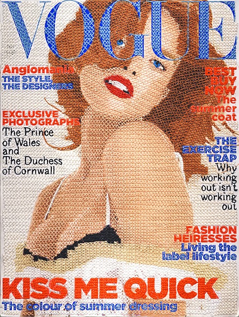 Print journalism is dying, but perhaps not stitch journalism! Inge Jacobsen recreated two Vogue covers in thread. You can see the other one at the first link.