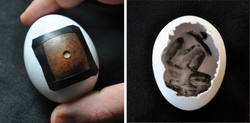 Francesco Capponi turned eggs into single-use pinhole cameras. The resulting images (if I understand him correctly), were imprinted on the inside of the eggs when they were cracked open. He provides step-by-step instructions on how you can do the same.