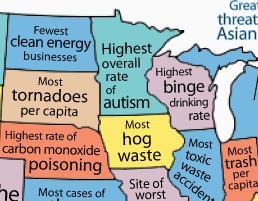 As if we need more things to fight over in America these info graphics will be sure to help in the age old argument “my state is better than your state.” These two maps of the USA have interesting environmental facts on “How does your state excel?” such as California has the most acres of organic farmland and “How does your state not excel?” revealing California also has the most smog. I’m sure all that smog will make for some delicious organic California oranges. Link