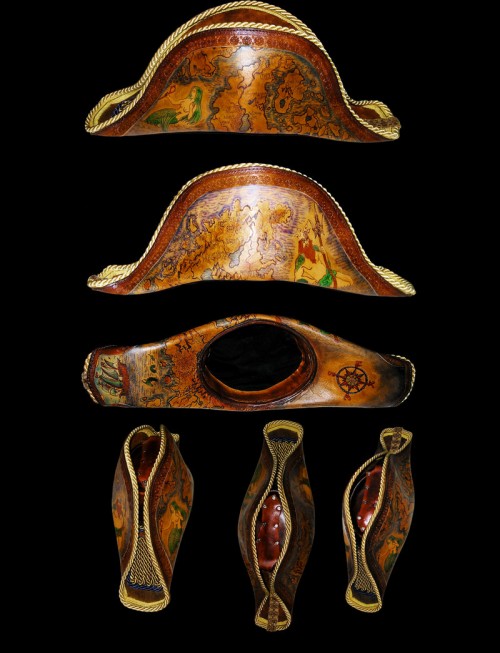 Admiral's Map Hat deviantART user Samuel Lee made this dandy leather hat and decorated it with a classic maritime motif. It's not a treasure map. At least, Lee doesn't say that it's a treasure map. Maybe there's a code worked into it somehow....Link via Boing Boing Comments (0) Login to comment. Click here to view up to the first 100 of this post's 0 comments