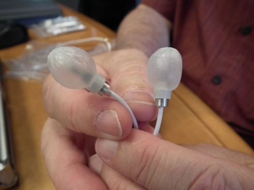 The ADEL currently comes in two flavors — a "balloon" completely surrounding a driver unit, with the membrane replacing the entire structure of a traditional earphone, both the plastic, metal, or wooden housing and eartip; and a retrofit to existing eartips, in which small vent holes are drilled into the collar that fits around an in-ear phone's driver unit, then covered with small sections of membrane.