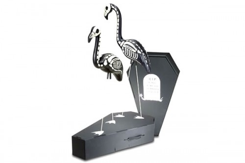 It's nearly summer. Are you looking for a quick way to spruce up your yard? You need the Party Skel-A-Mingo Flamingo Lawn Ornament from the NeatoShop. This Flamingo pair is to die for! It even comes in a heavenly coffin-shaped box.Be sure to check out the NeatoShop for more Home & Garden fun!
