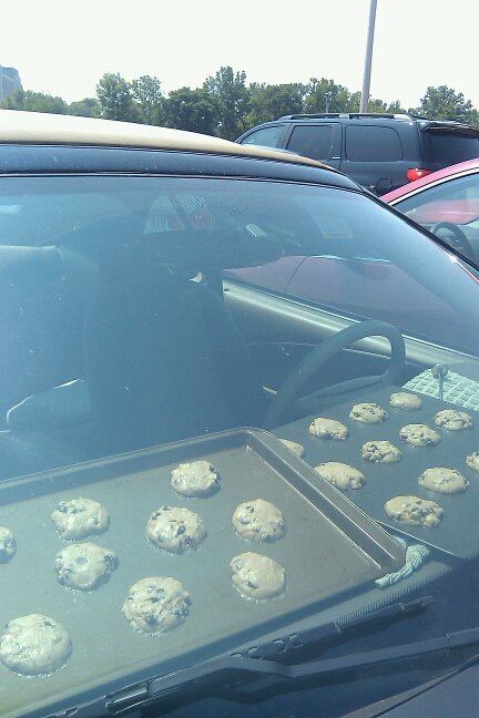 Bake cookies in a car? You betcha! In Amarillo, the temperatures have soared to over 100 degrees, and about 200 degrees in a closed car. Brittany Nunn of the Amarillo Globe-News baked chocolate chip cookies in her car. They took quite a while to bake, but the car smelled wonderful afterward. http://amarillo.com/blog-post/brittany-nunn/2011-07-21/why-does-my-car-smell-cookies -via reddit