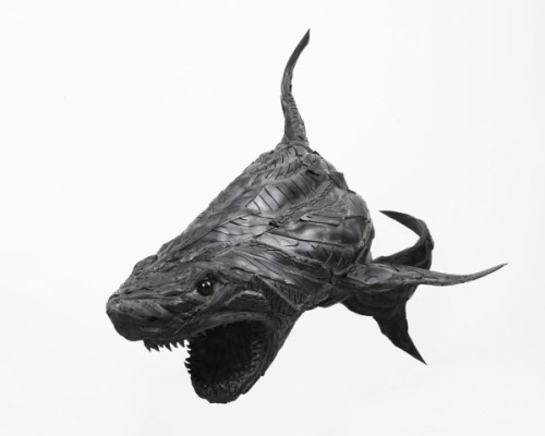 Korean artist Yong Ho Ji takes old tires and turns them into awesome sculptures of sharks, horses, monsters, and men. Much of his work is a warning about the dangers of genetic manipulation: