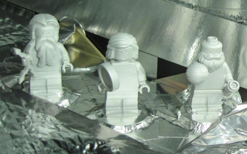 The Juno spacecraft, after a planned launch in August, will travel to and then orbit the planet Jupiter. On board will be three LEGO minifigs representing the Roman god Jupiter, his wife Juno, and the astronomer Galileo Galilei. Jupiter is holding his traditional lightning bolt, Juno a magnifying glass to represent her search for truth, and Galileo holds a globe and telescope. Link -via DVICE | Photo: NASA